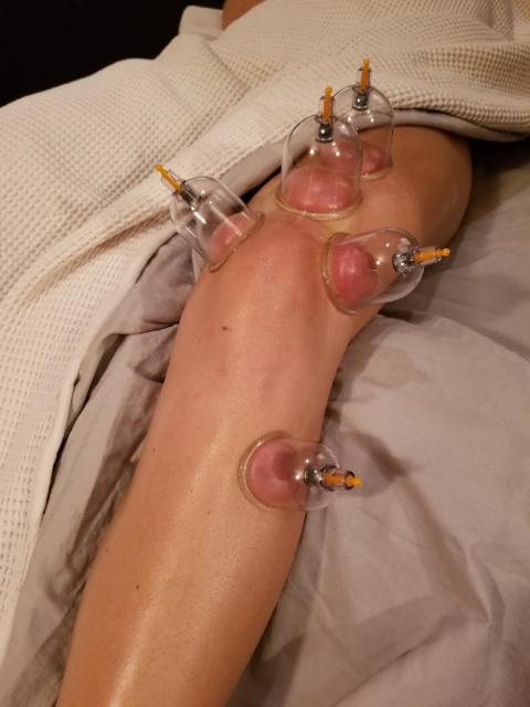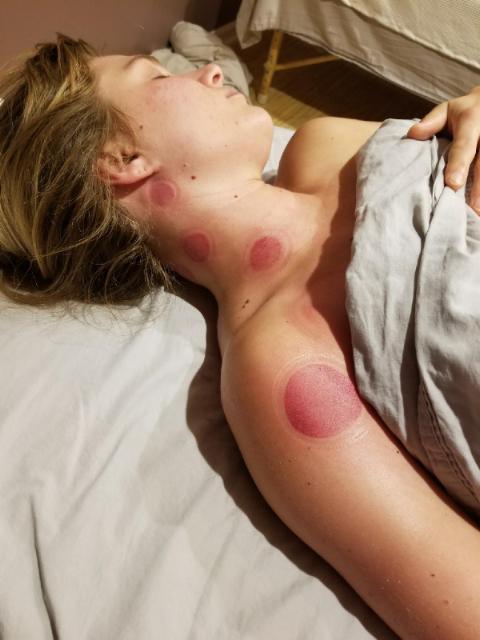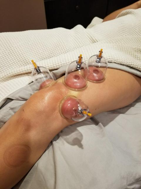 Cupping therapy involves the use of cups to create suction on your skin. This suction stimulates muscle and fascia tissue, increases blood flow, and helps relieve tension. The massage therapist will create a vacuum on your skin with the cups by using a manual pump. When the cup is placed on your skin, the natural vacuum draws your skin in to begin the cupping therapy. Cupping is a release using suction to pull blood and fluid that is “stuck” (which includes toxins and waste products) to the surface layers of the dermis to put it back into the blood stream for processing. The newly oxygenated blood then flows back into an area to promote healing.