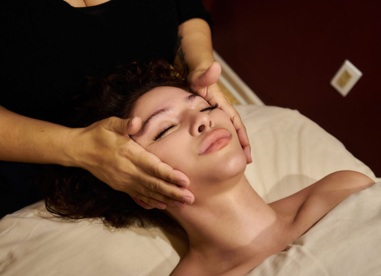 - Deep cleansing of the face, neck and décolleté: Cleansing oils are applied to these same areas, then an herbal toner is applied over the oils to customize the cleansing process.
