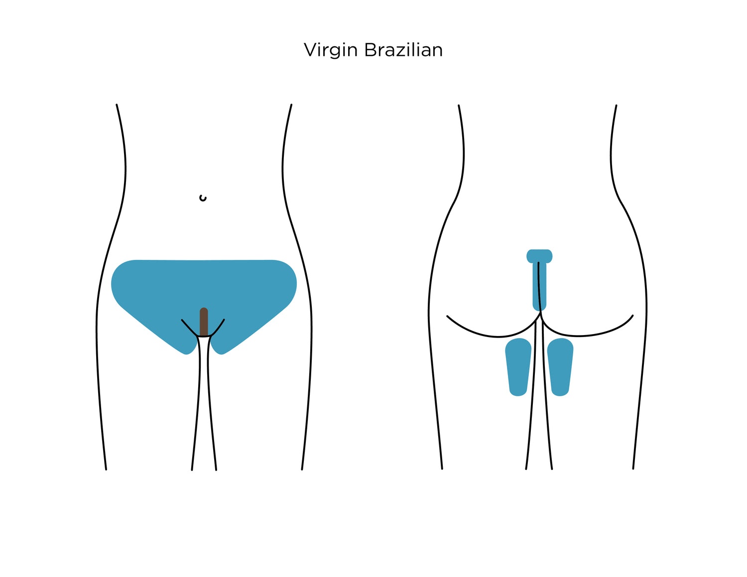 A Virgin Brazilian Bikini Wax refers to a client who has been growing the area for over three months and requires more materials and time to perform the service. We remove all of the hair from the front of the bikini area, as well as the sides of the bikini line, the vaginal lips and the labia, and in between the buttocks. The client has the option to leave a small vertical strip in the front if she chooses. $90
