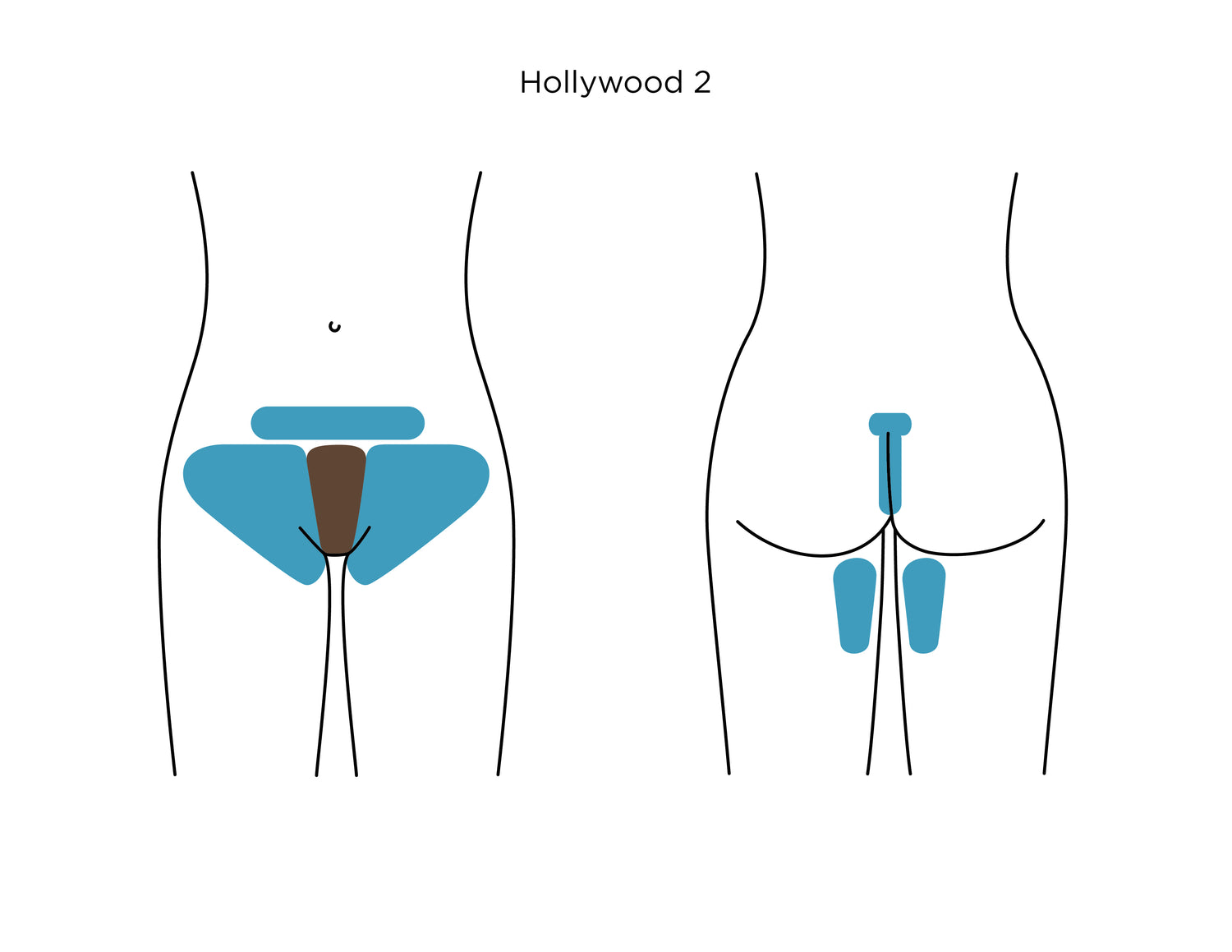 A Hollywood 1 bikini wax in Philadelphia removes all of the hair in front of the bikini line. A Hollywood 2 cleans up the sides of the bikini line in the front. But then you turn over and the derriere is waxed removing all of the hair in between the cheeks (as in Number 2). It wasn’t intentional when we came up with these names; it just may be a little easier to tell the difference between them.